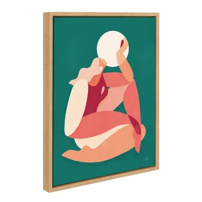 This cosmic, lunar print brings an abstract, eye-catching, and colorful art piece to any wall of your home. Artist Maggie Stephenson gives her mid-century perspective to bring life to this enigmatic print. Framed in the USA in Waunakee, Wisconsin, this floating canvas art will be a pleasure to look at every day in your living room, bedroom, nursery, or any room in the home. Printed on gallery-wrapped canvas and framed with a lightweight polystyrene frame, this wall art has two hangers already attached to the MDF back for easy wall display. The outer dimensions are 24 inches tall by 18 inches wide by 1.63 inches deep. Print Name: “How The Sun Loves The Moon”