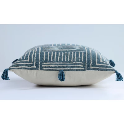 The Pillow Perfect Throw Pillow in Abstract Blocks Blue is a modern block print design that has been stone washed to create a slightly softer, worn-in feel. Colored in blue and natural, the simple timely method of stone washing yields artistic results with unique charm and character. Chunky yarn tassels upgrade this pillow for a clean and mod look. – the pillow can easily be paired with prints or complementary solids. The plush recycled polyester fill insert will maintain the pillow’s shape for years to come. Hand wash only as needed and hang to dry.