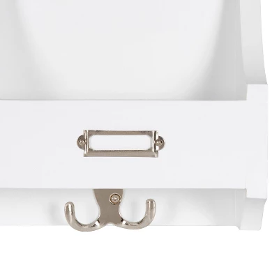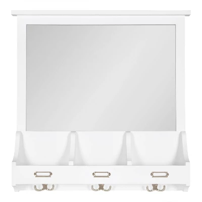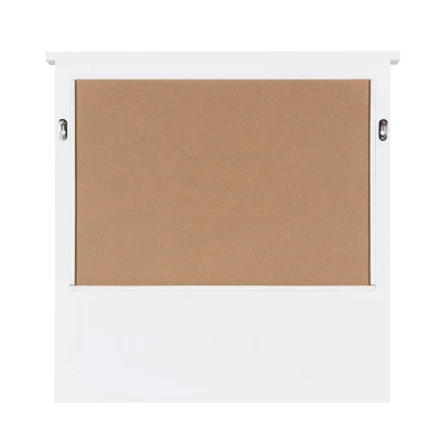 This organizational board combines rustic chic home décor with functionality. The outer dimensions measure 24 inches across and 24 inches high with a depth of 3.5 inches. The decorative board contains a 20.25 inch by 14.25 inch mirror to check you appearance one final time before leaving the house. (You look great!) The board also has three double metal hooks so your days of searching for your keys are over! The hooks are sturdy enough for full key chains or other odds and ends that you would like to hang. Also included are three pockets 7 inches across with a 1.5 inch lip to store your important mail, bills, dog leashes, or other accessories off of the top of your counter. The cubbies have metal label holders which you can customize however you would like. This functional board has sturdy wood construction with two keyhole hangers built into the back for easy display. This multi-functional wall hanging board is the perfect tool to organize to your office, kitchen, or entryway.