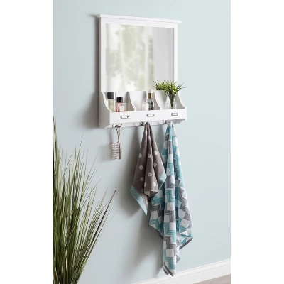 - STYLISH AND FUNCTIONAL: Decorative framed wall mirror with 3 metal double hooks and 3 pockets
