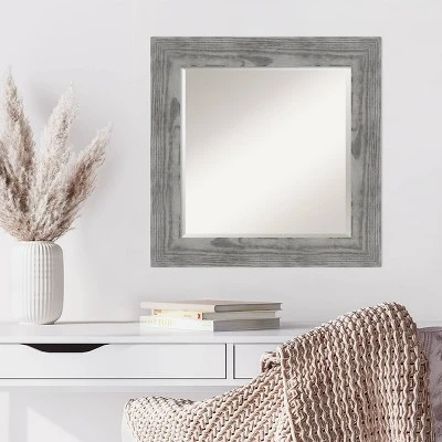 - MIRROR DETAILS: This mirror features premium glass for a clear, undistorted image and is finished with a beveled edge to give the glass a decorative touch. The overall size of this wall mirror measures 26 x 26 inches, including the frame. Its reflective area measures 20 x 20 inches.