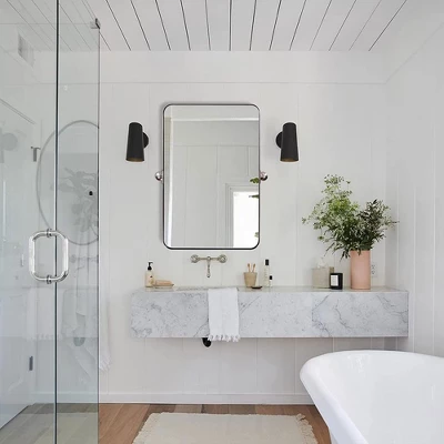 - VANITY MIRROR: Rectangular wall-mounting bathroom vanity mirror features adjustable pivoting frame that allows you to tilt mirror to custom angle