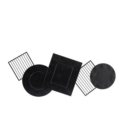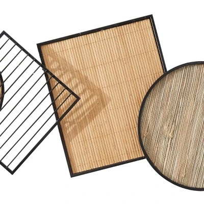 - Features geometric-shaped frames with long and thin bamboo slats
