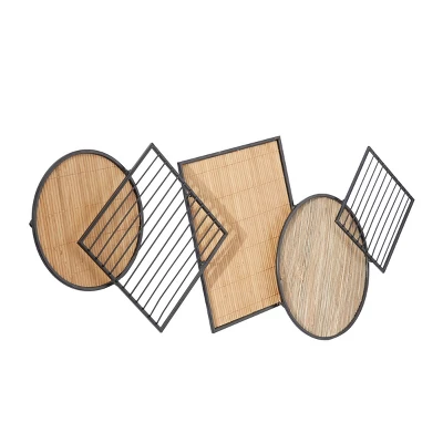 Maximize your open wall space with this eye catching horizontal display wall décor. Create a balanced space in the most creative way with this expertly crafted wall décor for captivating focal point. Give dimensions and textural beauty to your open wall space with this unique wall decor. This item ships in 1 carton. Can be hung vertically using the metal rings on the back; nails and screws not included. Suitable for indoor use only. This item ships fully assembled in one piece. This is a single brown colored wall sculptures. Modern style.