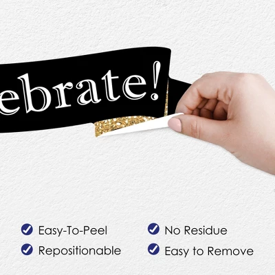 Adult 70th Birthday – Gold Wall Decals Backdrop includes 1 sheet of vinyl wall stickers that include letters and shape pieces that form the perfect Happy 70th Birthday backdrop for your Gold Birthday Party. Wall Decal sheet measures 50 inches wide by 16.5 inches tall. Pieces range in size from 26.5 x 5.75 inches to 3.25 x 3.75 inches. Effortless Decor: The Adult 70th Birthday – Gold stickers are an easy DIY party decoration that will make a big impact at your celebration. Stick them on a flat wall surface to create that picture-perfect setting and then grab your camera to capture all the fun. Easy to Use: Adult 70th Birthday – Gold vinyl decals are easy-to-peel and repositionable. Wall art stickers will adhere to various surfaces including painted walls, plastic, wood, glass, and metal. To use, make sure your surface is clean and dry. Slowly peel the sticker from the paper to avoid tearing and smooth over with your hand. They are also easy to remove, leaving no residue. High-Quality Supply: Adult 70th Birthday – Gold wall stickers come with a quality matte finish and vibrant colors. They are printed on water-resistant professional quality material and will arrive on one full sheet rolled. Made In The USA: Adult 70th Birthday – Gold Wall Decals are designed and manufactured at our Wisconsin facility using materials that are Made in the USA. Adult 70th Birthday – Gold Vinyl Stickers uses a No-Mess Glitter Print: Our vinyl stickers are designed with a printed image of glitter, eliminating glitter flake while maximizing bling effect!
