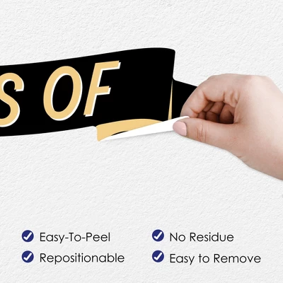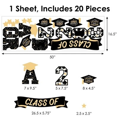 Big Dot of Happiness Goodbye High School, Hello College Wall Decals includes 1 sheet of 20 assorted vinyl wall art stickers that you can arrange to add a special touch to your home decor. Wall Decal sheet measures 50″ wide by 16.5″ tall. Pieces range in size from 26.5 x 5.75″ to 2.5 x 2.5″. Effortless Decor: The Black and Gold Grad wall stickers are an easy solution for bringing in some added charm to your space within minutes! You can use the wall decals for party or celebration rooms, impressive photo backdrops, or as easy decor at your Graduation Party. Easy to Use: Goodbye High School, Hello College vinyl decals are easy-to-peel and repositionable. Wall art stickers will adhere to various surfaces including painted walls, plastic, wood, glass, and metal. To use, make sure your surface is clean and dry. Slowly peel the sticker from the paper to avoid tearing and smooth over with your hand. They are also easy to remove, leaving no residue. High-Quality Supply: Goodbye High School, Hello College wall stickers come with a quality matte finish and vibrant colors. They are printed on water-resistant professional quality material and will arrive on one full sheet rolled. Made In The USA: Black and Gold Grad Wall Decals are designed and manufactured at our Wisconsin facility using materials that are Made in the USA.