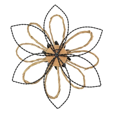 This dimensional wall flower is made of braided black metal wire mixed with wrapped natural grasses. Add this floral piece to a gallery wall with your favorite family photos or hang it on its own for a unique piece of art that is bound to draw attention to your boho style.