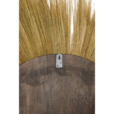 - •This wall mirror features a round inner frame profile with a sunburst style dried grass external decorative frame