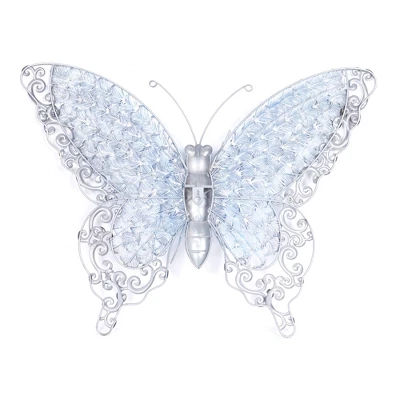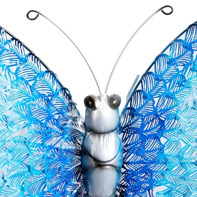 - •Metal butterfly wall decor features a metallic silver body with black highlights and a gradient blue wing design