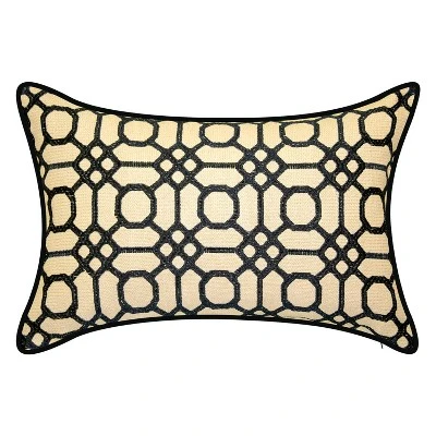 Embroidered Geometric Raffia Rectangular Indoor/Outdoor Throw Pillow – Edie@Home