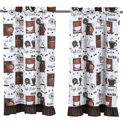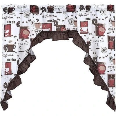 GoodGram Complete 3 Piece Rod Pocket Cafe Tier & Swag Valance “Coffee Shoppe” Kitchen Curtain Set