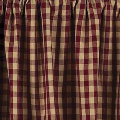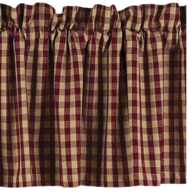 This primitive Heritage House Check Valance is beautiful in its simplicity! The uncomplicated yet popular red & tan check provides a charming backdrop for any decor! Lovely on its own, or pair with coordinating tiers for a more dramatic appeal!.