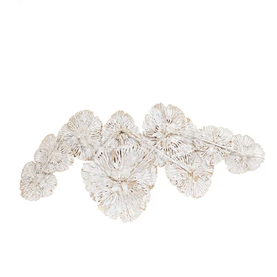 - Rustic floral wall sculpture features a white gray and metallic gold iron finish