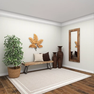 - •Metal wall art accentuates a bouquet of palm leaves with textured pattern