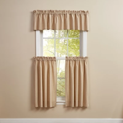 Create a warm and bold statement for your window with this beige and tan stripe valance. You will quickly fall in love with the classic appeal this window treatment adds to your home decor with its timeless design. The natural ruffling of the fabric at the top paired with its simple check will create a pretty, country look without having to redecorate an entire room.