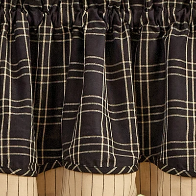 Uplift your living space by introducing a classic patterned valance. This lined window accessory features a layered black and beige plaid over a striped design layer. Introduce this beautiful piece to your space to invite a fresh look without having to redecorate the entire room.