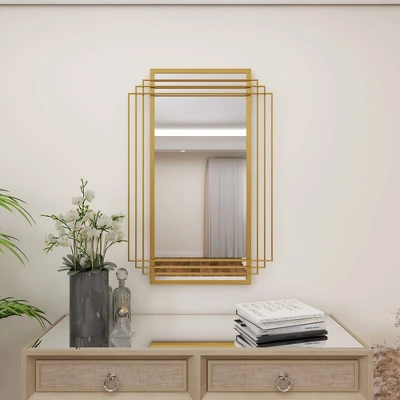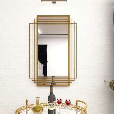 - •Rectangle vanity wall mirror features an elegant gold frame with outlays of metal rods
