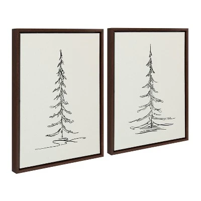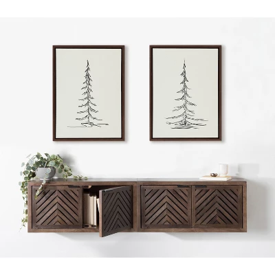 The outer dimensions are 24 inches by 18 inches by 1.6 inches. Print Name: “Minimalist Evergreen Trees Sketch 1 and Minimalist Evergreen Trees Sketch 2”