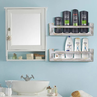 - STURDY DESIGN Β Strong enough to hold your favorite small objects Β Rustic distressed style shelf (with crossbar for extra security) Β Made of 100% Solid Wood Β Neutral color Β Comes assembled and ready to hang Β Set of 2 Β Approximate measurements Measures approximately 16.2Β L x 4.6Β W x 4.5Β H