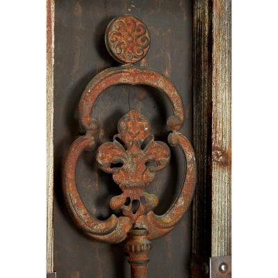 - •These wood and metal wall decor accentuate oversized vintage keys in a vertical rectangular frame